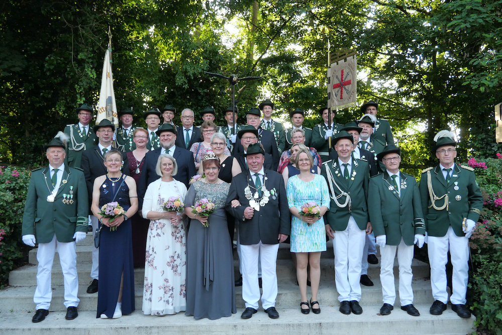 Der Sonntag ist bei der Schützenbruderschaft St. Hubertus Gröblingen-Velsen ein Feiertag. Das bedeutet nicht, dass das Schützenfest ruht. Im Gegenteil: Die Schützen feiern erst morgens mit einer Messe im Zelt, dann zahlreiche Geehrte, dann einen bunten Schützenfesttag mit Familien und Kindern, und abends die Krönung nebst abschließendem Festball. Feiertag also im Wortsinn.