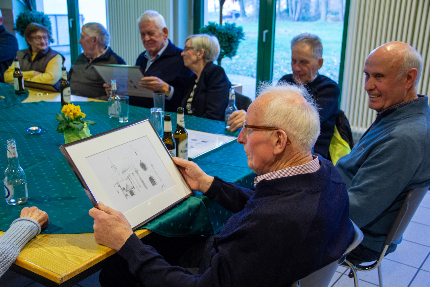 Hierbei konnte sich Brudermeister Franz-Josef Abeck über 10 neue Ehrenmitglieder freuen. Als kleines Präsent übereichte er Ihnen eine Zeichnung der Gröblinger Kapelle.